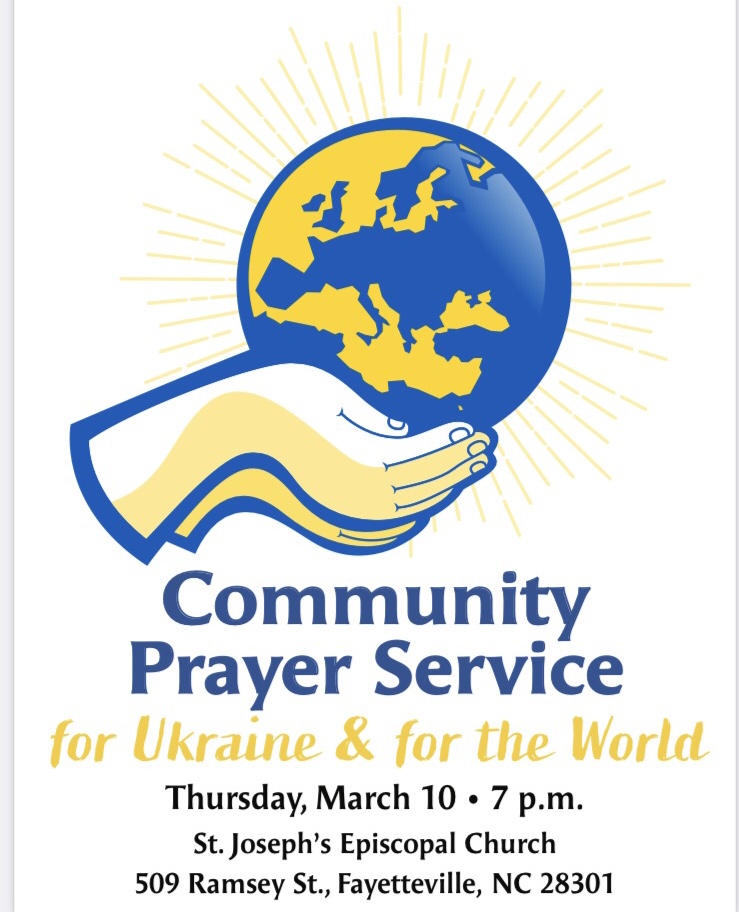 Join the community of Fayetteville for a Community Prayer Service to pray for Ukraine and the World on Thursday, March 10, 2022 at 7 p.m. The service will occur at St. Joseph’s Episcopal Church in Fayetteville. All are welcome.