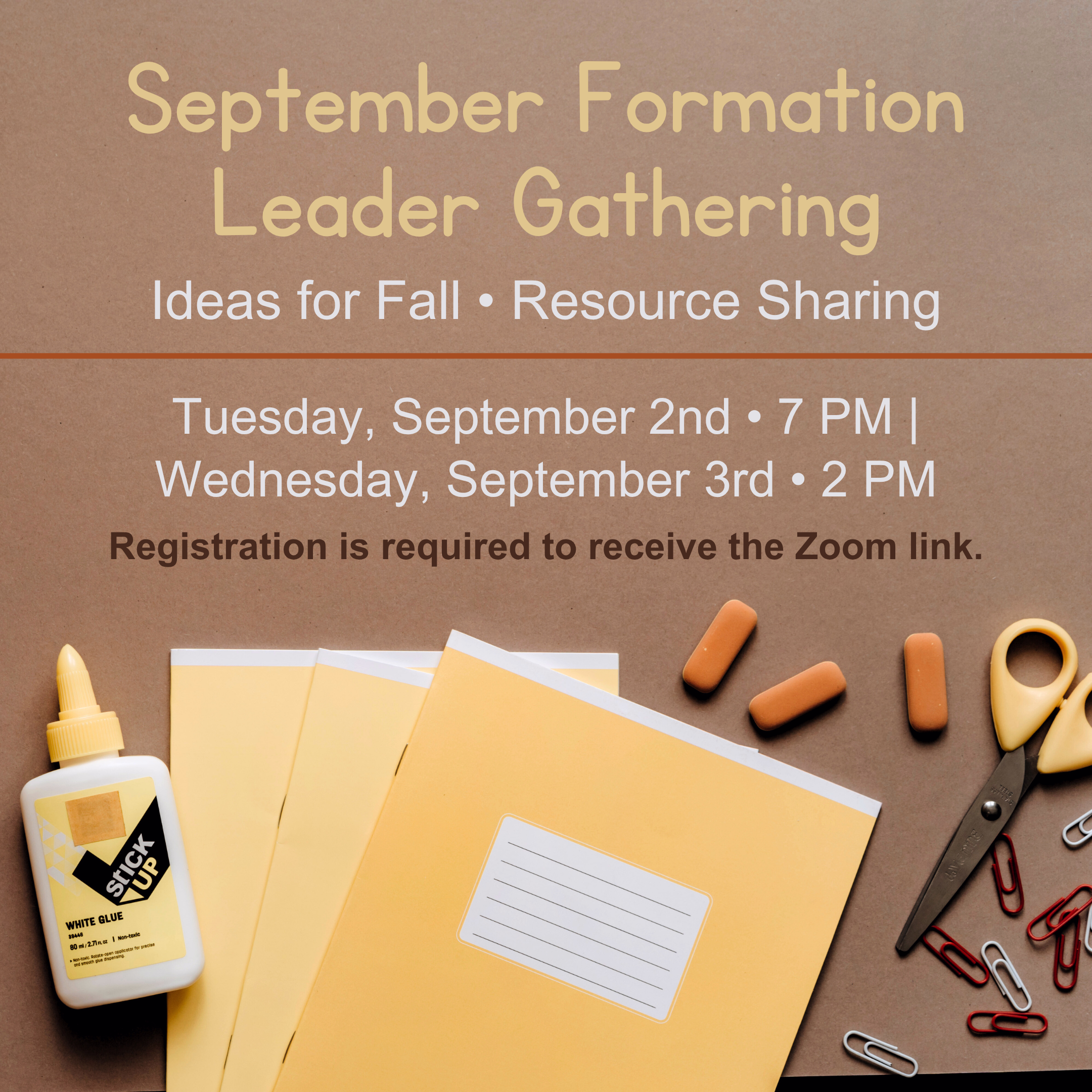 Join with Christian Formation Leaders from around the diocese for our quarterly gathering to share ideas and resources. We hope you will bring a resource or idea that you have tried or used that you would like to share with others.