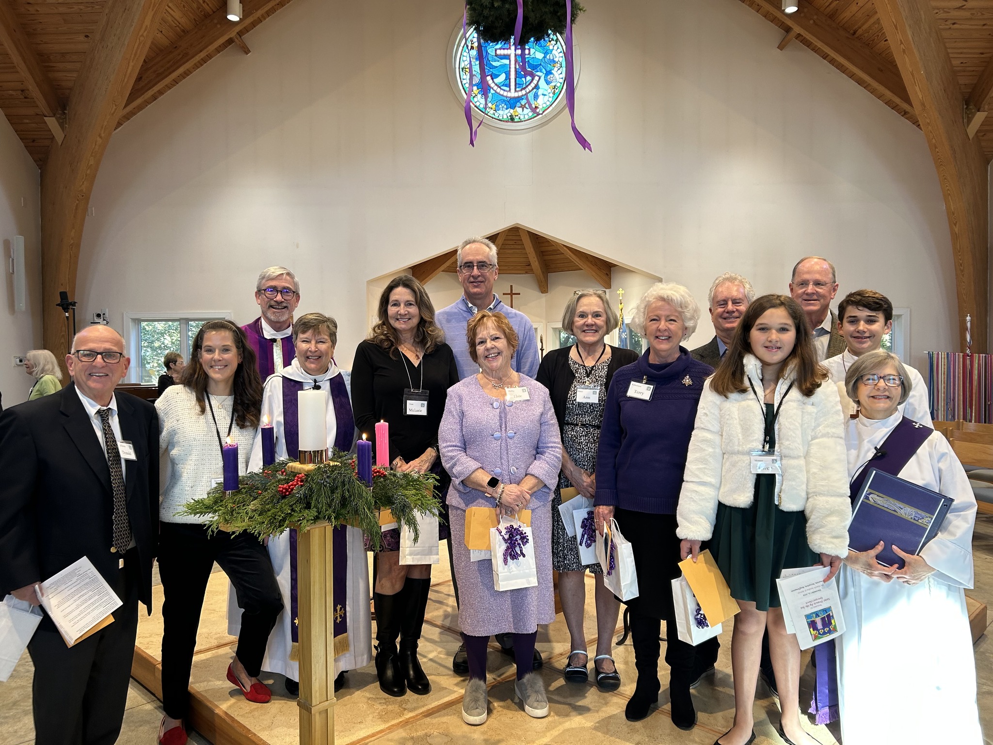 Today, on the 4th Sunday of Advent, Bishop Skirving visited Saint Francis by the Sea Church in Pine Knoll Shores for worship that included confirmation, reception and reaffirmation of baptismal vows for the group of people pictured here. This was his first visit to the congregation since the Rev’d Mary Kay Brown has become their rector. Welcome, Mary Kay! Also pictured with the group is the Rev’d Deacon Robin Smith. There was lots of happy energy and great music, including an anthem declaring that we are “Almost There!”