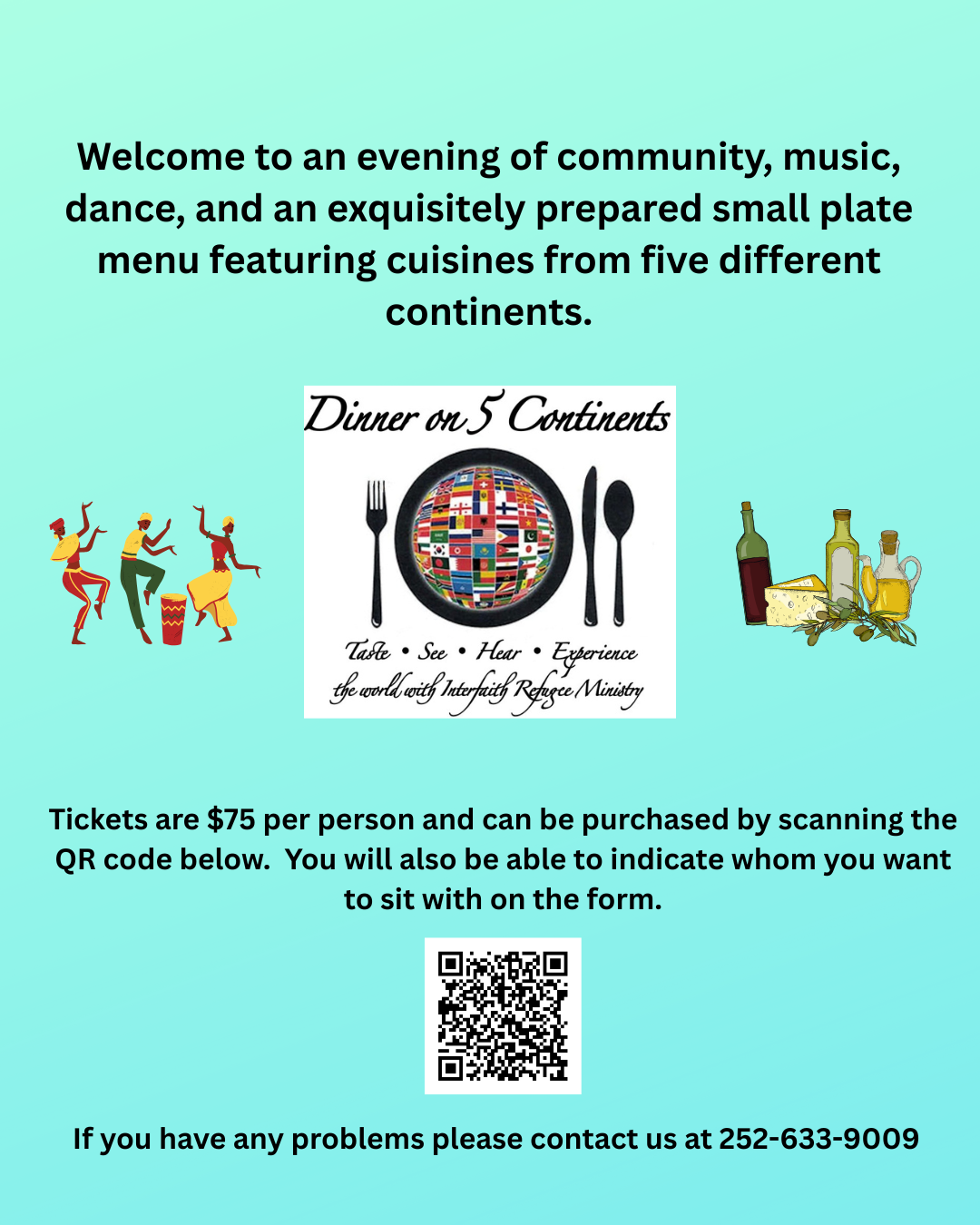 Interfaith Refugee Ministry’s “Dinner on 5 Continents” will be on Saturday, March 7, 6-9pm, at Christ Church’s Harrison Center, 311 Middle St., New Bern, NC 28560. All are invited to enjoy an evening of community, music, dance, and an exquisitely prepared small plate menu featuring cuisines from five different continents. Tickets are $75 per person and can be purchased by clicking here. You will also be able to indicate whom you want to sit with on the form.