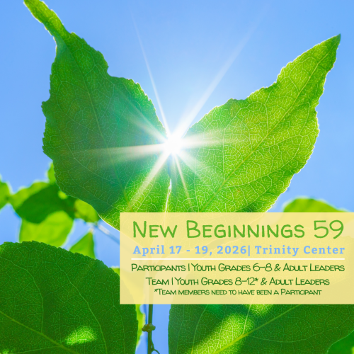New Beginnings is a weekend event designed especially to respond to the unique challenges and concerns of your people in grades 6-8. It was created by adults and young people to help participants grow in their love of themselves, others and for Jesus Christ.
