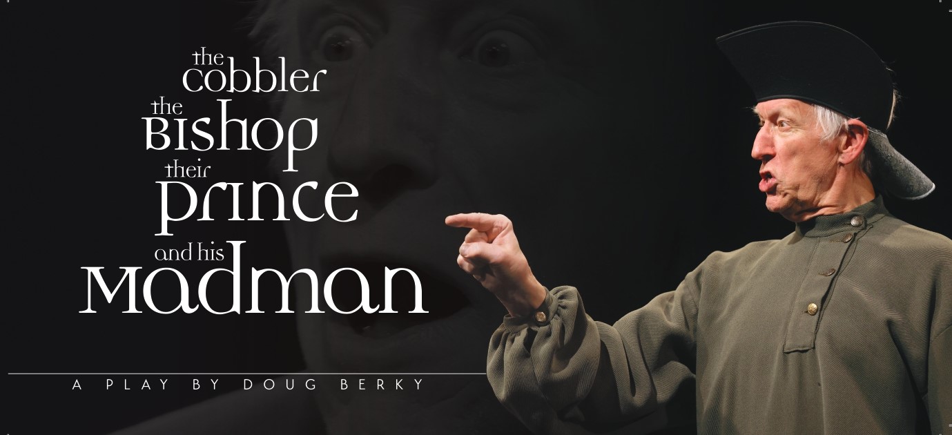 The Cobbler, The Bishop, Their Prince, and His Madman is a play by Doug Berky that suggests there is truth to the old saying, “Where love is, God is.” As we face these troubled times, when so many leaders have lost faith and forsaken virtue, Berky’s play is a journey to the places where God is at work, where despair becomes hope, where war is defeated by the sowing of compassionate seeds, and where pompous vanity can be dissolved by healing laughter.